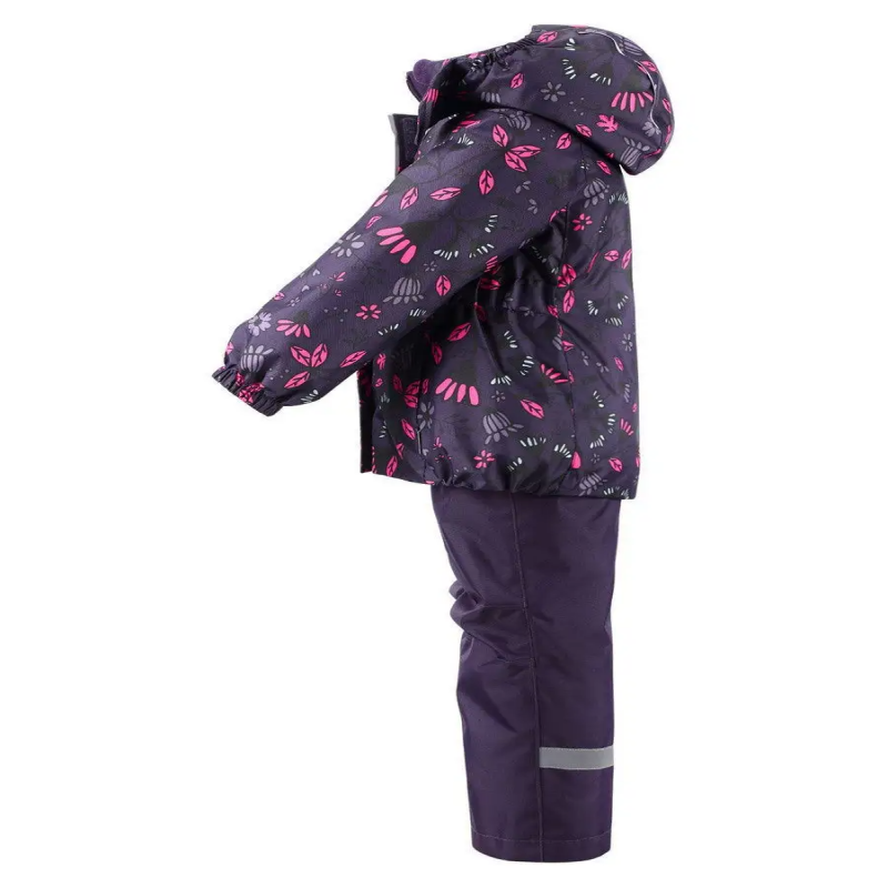 Этот зимний комплект для девочек просто идеален для активного отдыха на свежем воздухе! Брюки изготовлены из сверхпрочного материала и снабжены защитой от снега. Съемные регулируемые подтяжки позволяют откорректировать брюки идеально по размеру, а задний средний шов проклеен для обеспечения водонепроницаемости. Куртка украшена цветочным рисунком и снабжена безопасным и практичным съемным капюшоном, а карманы на липучке сохранят все найденные за день маленькие сокровища! И куртка, и брюки изготовлены из ветронепроницаемого и дышащего материала с водо, и грязеотталкивающей поверхностью.