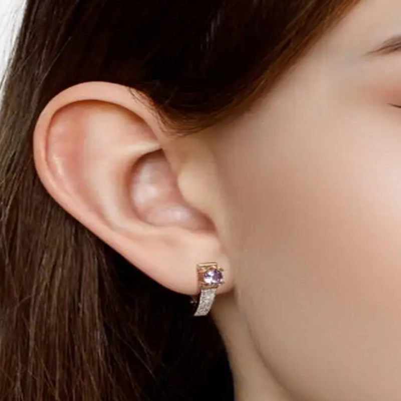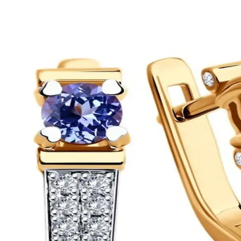 **Серьги из золота с бриллиантами и танзанитами.** Изделие выполнено из золота 585 пробы, вставки 12 Бр Круг 17 0,090 2/3 А, 24 Бр Круг 17 0,90*1,00 0,096 2/3 А, 2 Танзанит Круг 4,00