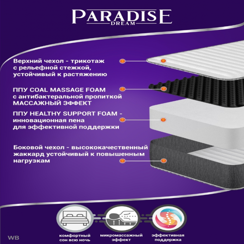 | Особенности матраса | беспружинный; Двусторонний матрас; массажный эффект |
