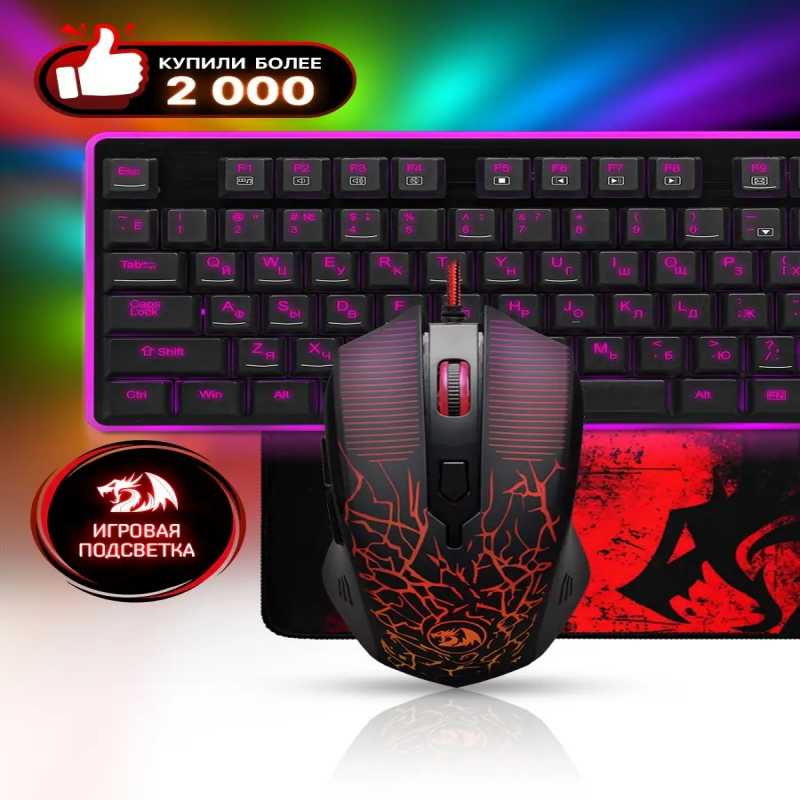 Redragon Игровая клавиатура для компьютера + мышь + ковер Dyaus