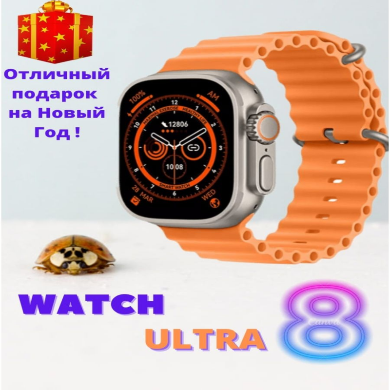 Smart Watch 8 ULTRA новинка 2022-2023 года. Смарт Часы 8 серии / Watch 8 ULTRA Premium версия. Процессор стал ещё мощнее. В наличии цвета: Черный, Золотой и Серебро. Приложение Wearfit Pro (более 500 бесплатных циферблатов на выбор). Основные отличия Смарт часов 8 Ультра от 7 серии – это наличие безрамочного AMOLED экрана 2.02 дюйма. В данной версии корпус выполнен из цинкового сплава. Версия Bluetooth - 5.2. Уровень водонепронецаемости IP68. А так же увеличен объём батареи! Смарт часы женские, детские для взрослых мужчин, это стиль в современной жизни. Подходят для apple IOS и Андроид. Часы наручные мужские включают в себя часы шагомер браслет давление, браслет здоровья с измерение давления, часы для детей с gps и телефоном, часы с измерением артериального давления, часы с тонометром наручные для тренировки, электронные часы с термометром, часы с компасом, часы с секундомером. Фитнесс браслет на руку женский универсальный, станет помощником на повседневное ношение, для занятий спортом, велосипедные аксессуары. Время работы у вотч часов хватит надолго, до полной разрядки. Циферблат для часов выполнен из прочных материалов. Ручные часы сенсорные совершают звонки, уведомления о смс, мониторинг сна, кардио тренировки, управление музыкой. Электроные часы идеальный подарок на день рождения девушке, маме, сестре, часы для мальчика, папы, брата. Часы для айфона и смартфона не являются медицинским прибором. Смарт часы, Фитнес браслет, 7 серии, часы для мужчин, женские часы, браслет, смарт часы 8 серии. Развернуть описание